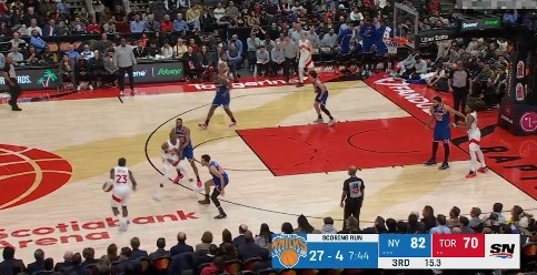 尼三疯!尼克斯第三节终末快要8分钟打了猛龙一个27-4&反超12分体育录像/图片