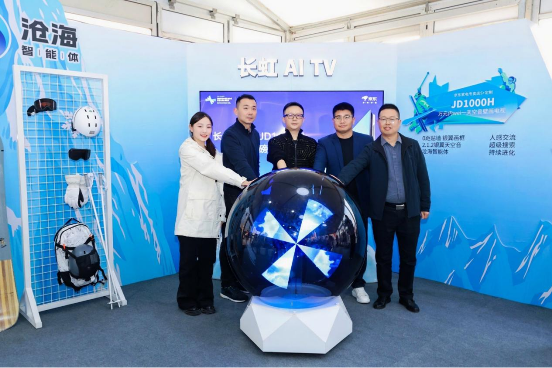 一场大型赛事的举办,少不了企业提供扶直,本届海外雪联滑雪大跳台世界杯的扶直商之一为国内赫赫闻明的老牌家电巨头长虹。在赛事现场,长虹还召开了以“AI不设限”为主题的发布会,带来了AI TV眷属的新成员U7H Mini和JD1000H。